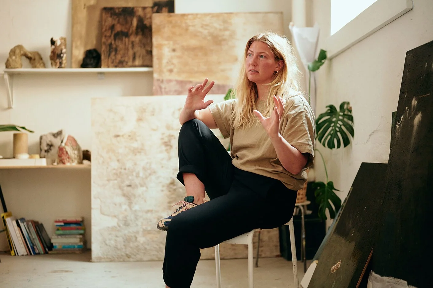 “Da jeg studerede og ikke havde meget penge, så jeg ofte i skolens affald for at finde materialer til mine projekter. Det var en sjov, kreativ og udfordrende måde at give nyt liv til noget gammelt. Der er det, der har inspireret min nuværende tilgang. Det giver mig altid spændende overraskelser.”